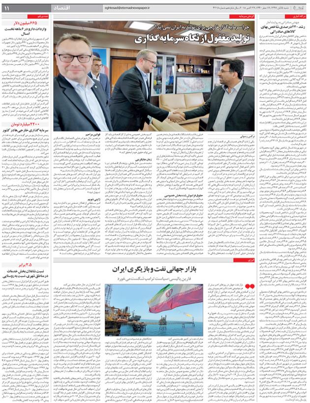 توليد مغفول از نگاه سرمايه‌گذاري بازار جهاني نفت و بازيگري ايران رشد ۲۴۰ درصدي شاخص بهاي كالاهاي صادراتيعدد و رقم