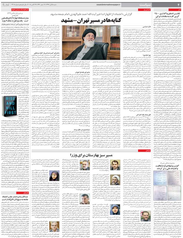 و انضباط مالي را پر كردندمبارزه مسلحانه تنها راه آزادي فلسطين است –  يك روز قبل از جنگ ۷ روزه صداقت با مردم در جلب اعتماد جامعه به مسوولان تاثيرگذار است