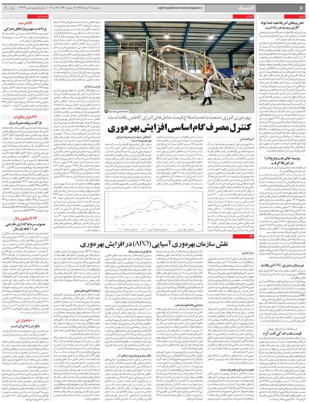 كنترل مصرف گام اساسي افزايش بهرهوري