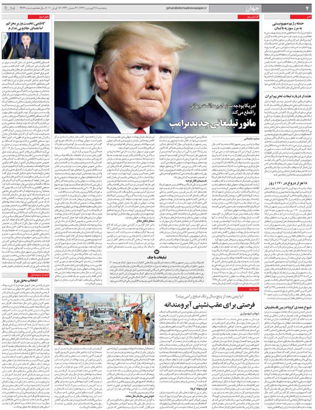 مانور تبليغاتي جديد ترامپفرصتي براي عقب‌نشيني آبرومندانهخبركاظمي: نخست وزير بحرانم
