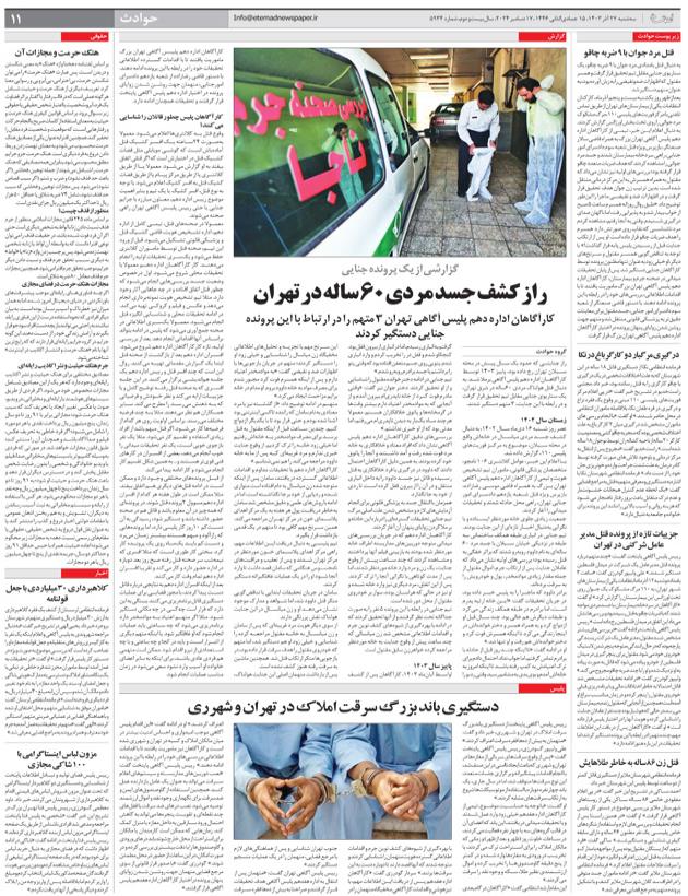 راز كشف جسد مردي ۶۰ ساله در تهران