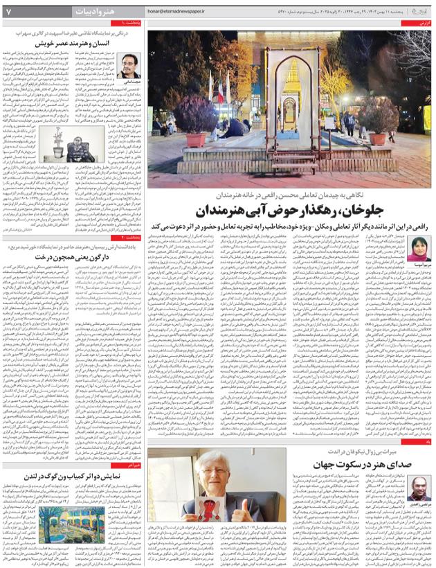 جلوخان، رهگذارحوض آبي هنرمندانصداي هنر در سكوت جهان