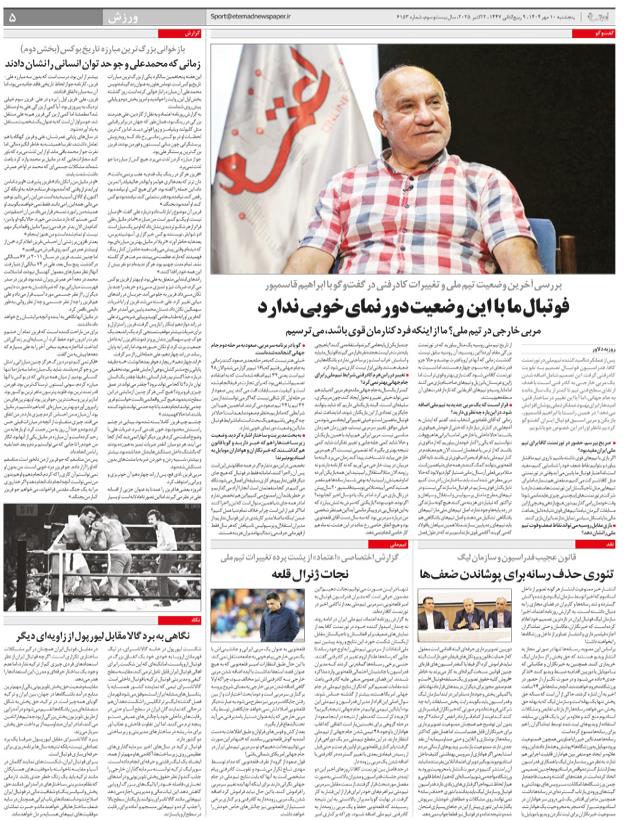 فوتبال ما  با  اين  وضعيت دورنماي خوبي نداردتئوري حذف رسانه براي پوشاندن ضعف‌هانجات ژنرال قلعهزماني كه محمدعلي و جو حد توان انساني را نشان دادندنگاهي به برد گالا مقابل ليورپول از زاويه‌اي ديگر