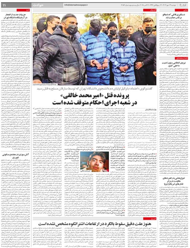 پرونده قتل «اميرمحمد خالقي»  در شعبه اجراي احكام متوقف شده استهنوز علت دقيق سقوط بالگرد در ارتفاعات اشترانكوه مشخص نشده است