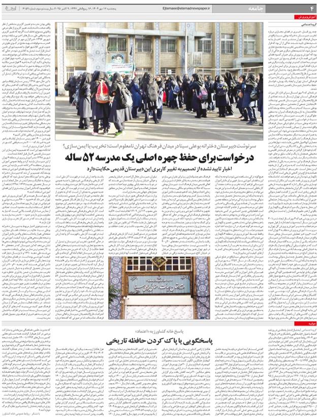 درخواست براي حفظ چهره اصلي يك مدرسه 52 ساله