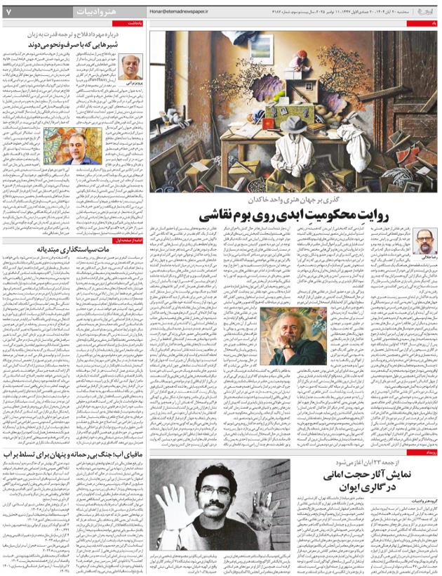 روايتِ محكوميتِ ابدي روي بوم نقاشي نمايش آثار حجت اماني در گالري ايوانشيرهايي كه با صرف‌ونحو مي‌دوندمات سياستگذاري  مبتديانه