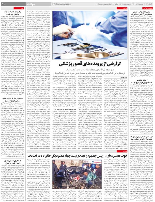 فوت همسر معاون رييسجمهور و مصدوميت چهار عضو ديگر خانواده در تصادف