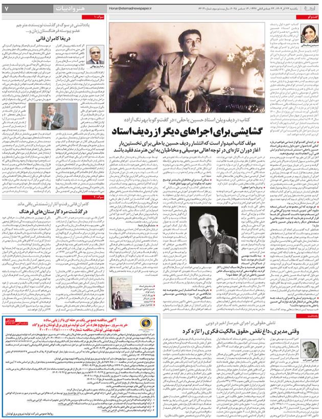 گشايشي براي اجراهاي ديگر از رديف استاد