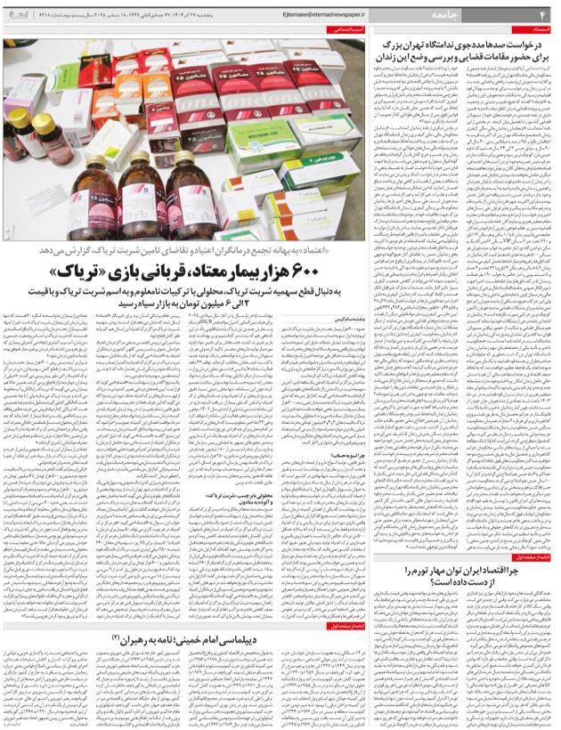 ۶۰۰ هزار بيمار معتاد، قرباني بازي «ترياك»ديپلماسي امام خميني؛ نامه به رهبران (۲)درخواست صدها مددجوي ندامتگاه تهران بزرگ براي حضور مقامات قضايي و بررسي وضع اين زندان چرا اقتصاد ايران توان مهار تورم را  از دست داده است؟