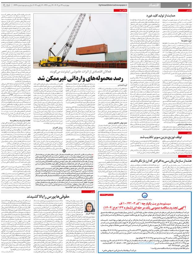 روزنامه در یک نگاه دریافت همه صفحات