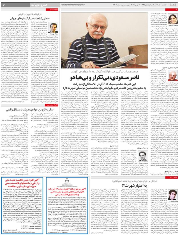 ناصر مسعودي، بي‌تكرار  و  بي‌هياهو