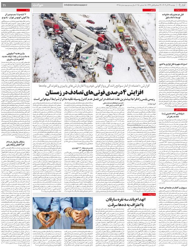 افزايش ۴درصدي فوتيهاي تصادف در زمستان