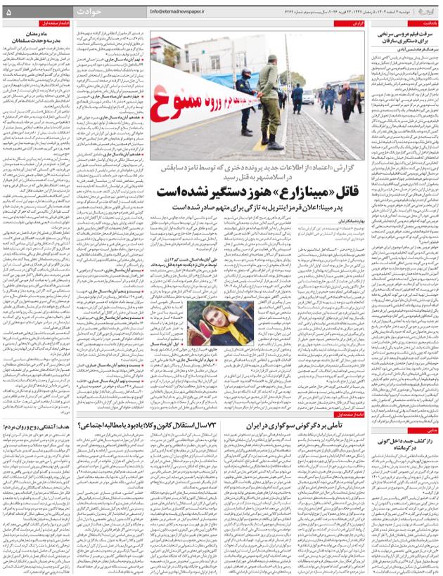 قاتل «مبينا زارع» هنوز دستگير نشده است
