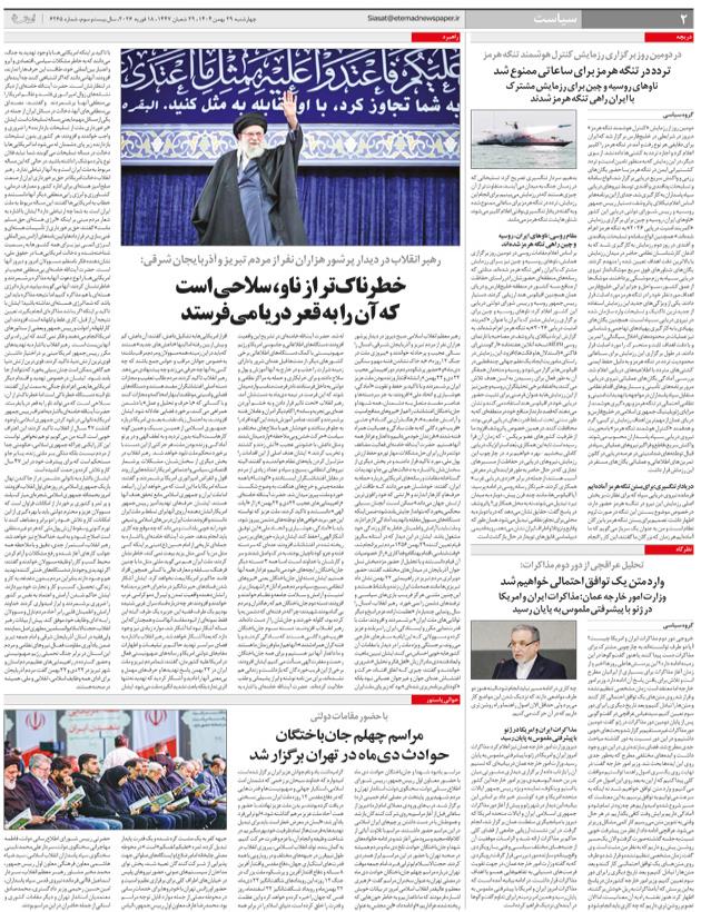 حوادث دي‌ماه در تهران برگزار شدتردد در تنگه هرمز براي ساعاتي ممنوع شد