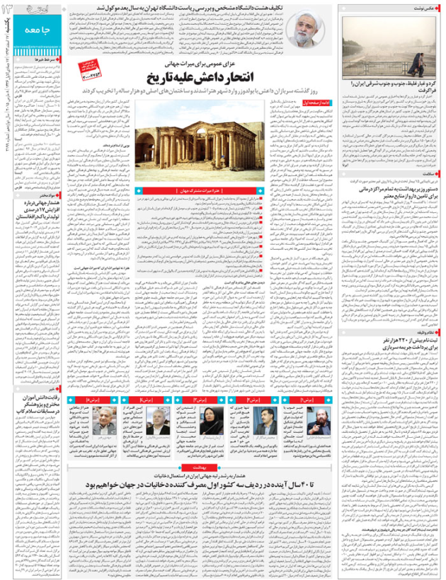 تكليف هشت دانشگاه مشخص و بررسي رياست دانشگاه‌ تهران به سال بعد موكول شدانتحار داعش عليه تاريخ