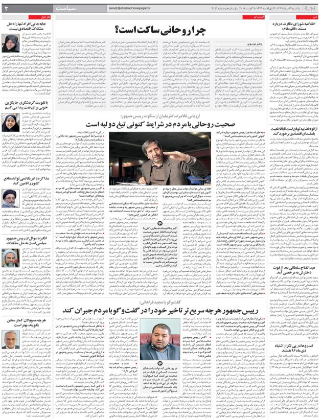 رييسجمهور هرچه سريعتر تاخير خود را در گفتوگو با مردم جبران كند