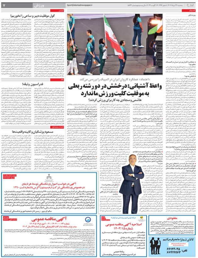 واعظ آشتياني: درخشش در دو رشته ربطي به موفقيت كليت ورزش ما ندارد