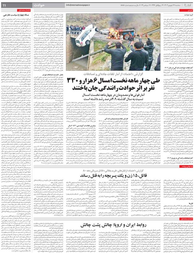 طي چهار ماهه نخست امسال ۶ هزار و ۳۳۰ نفر بر اثر حوادث رانندگي جان باختند
