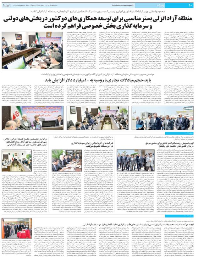 منطقه آزاد انزلي بستر مناسبي براي توسعه همكاريهاي دوكشور دربخشهاي دولتي و سرمايهگذاري بخش خصوصي فراهم كرده است