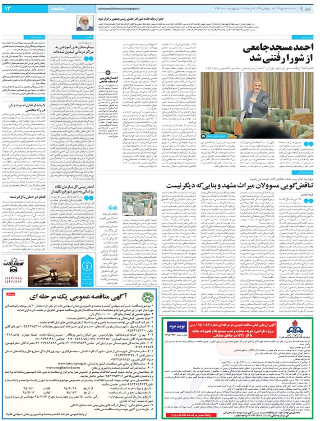 از شورا رفتني شدتناقض‌گويي مسوولان ميراث مشهد و بنايي كه ديگر نيستبيمارستان‌هاي آموزشي به مراكز درماني تبديل شده‌اندسرخط خبرهاخبرچمران: يك جلسه شورا در حضور رييس‌جمهور برگزار شود