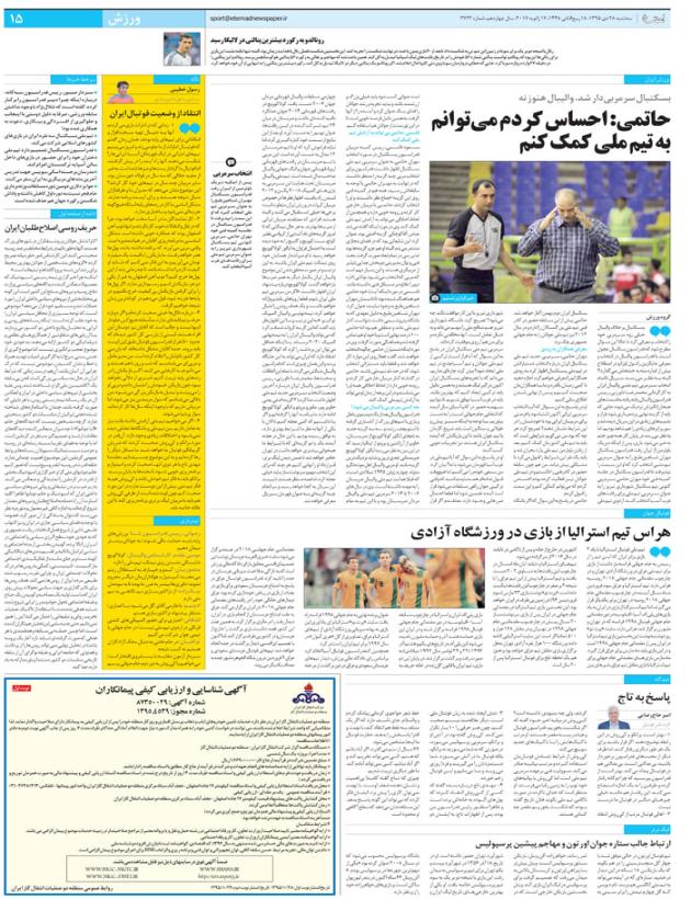 هراس تيم استراليا از بازي در ورزشگاه آزادي