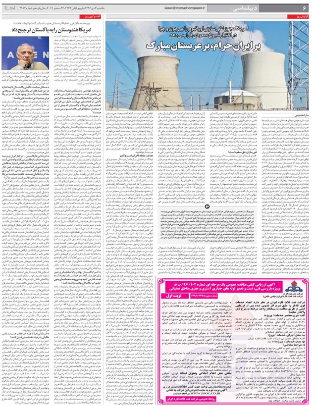 بر ايران حرام، بر عربستان مباركامريكا هندوستان  را به پاكستان ترجيح داد