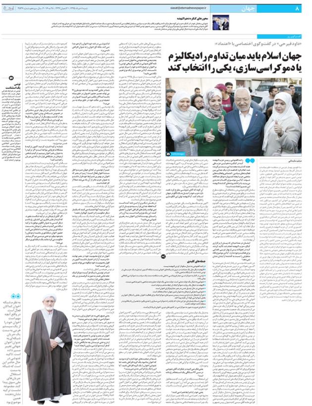 جهان اسلام بايد ميان تداوم راديكاليزم يا دموكراسي‌سازي، يكي را انتخاب كندمحورهاي كنگره دهم النهضه